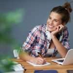 Female student learning at home